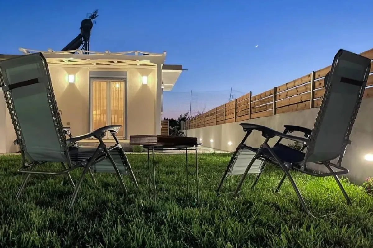 Κομψός & ευρύχωρος κήπος με καθιστικό και μπάρμπεκιου.